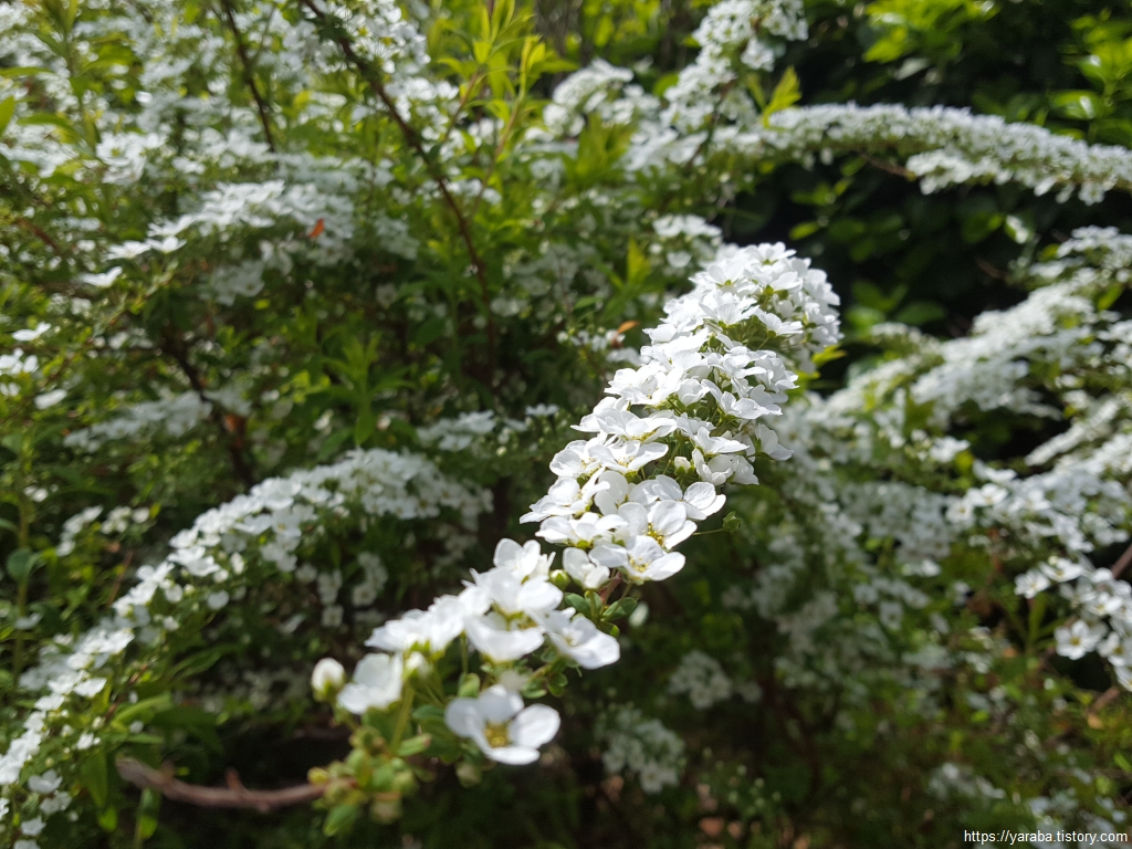 조팝나무가 출발지 안내석 옆에서 하얀 꽃을 피웠다. 마치 신부의 하얀 드레스 같이 아름답다.