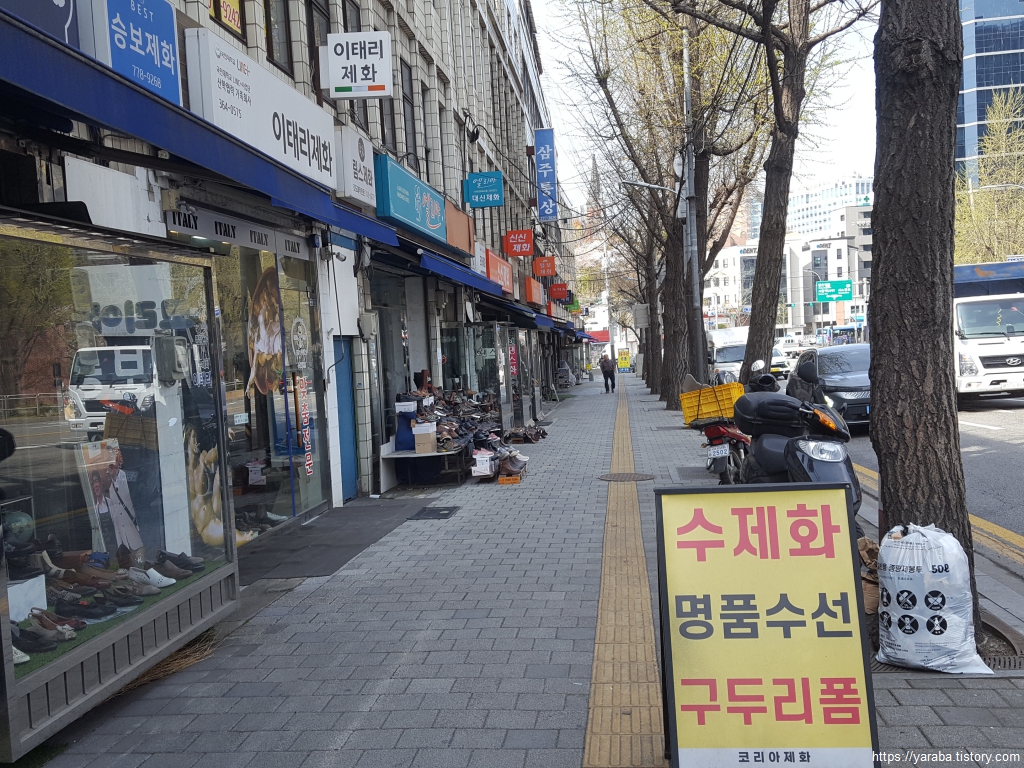 염천교를 지나서 염천교 수제화 거리를 지나다 보니 지난날 수제화 구두가 일반적이었던 때를 추억하게 된다. 양복도 내 신체 치수에 맞게 만들고 신발도 내 발 모양에 맞는 신발을 신었는데 이제는 추억이 되고 말았다. 길은 서울역 뒤편으로 이어진다.