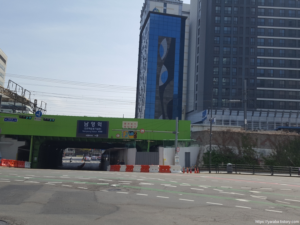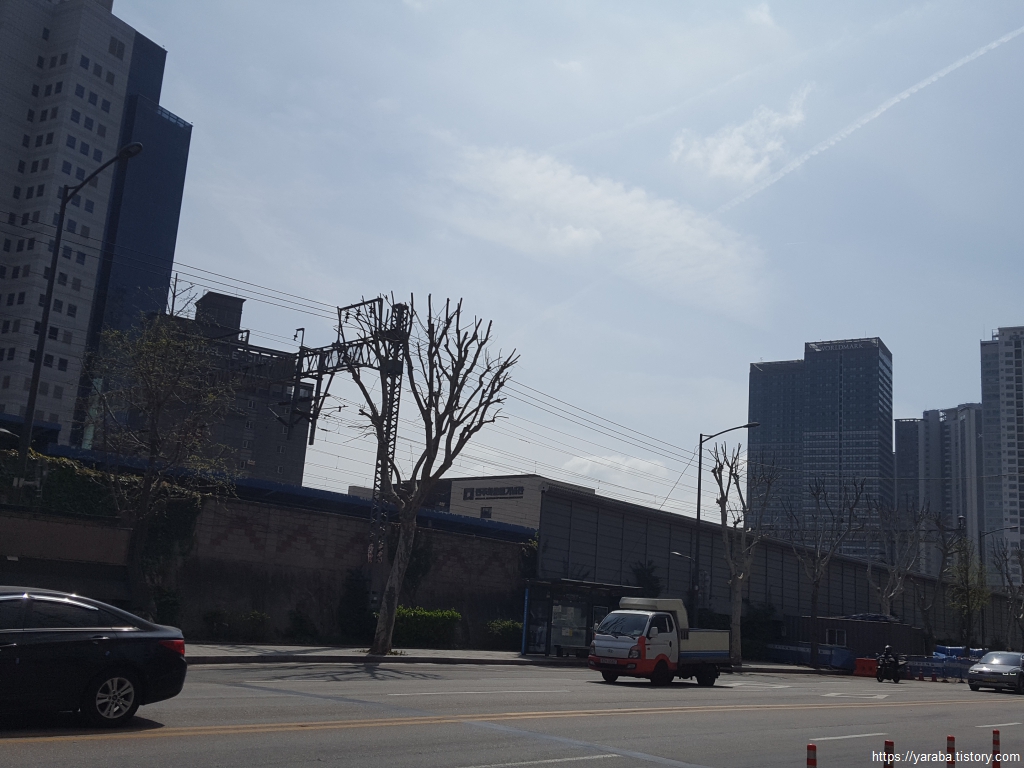 길은 남영역 뒤편을 지나서 삼각지 쪽으로 계속 내려간다.