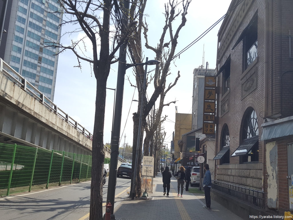 길은 삼각지 고차차도를 지나서 추억의 삼각지로 향한다. 지금은 한창 보수 공사 중이었다.