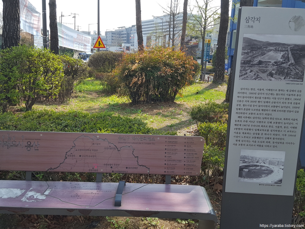 1967년에 세워져 1994년까지 삼각지에 존재했던 입체 고가로도 사라지고 용산에 있던 미 8군도 평택으로 내려가면서 이곳은 예전과는 사뭇 다른 분위기다. 삼각지 인근의 표구 상가들과 작은 건물의 음식점들이 여전히 남아있어 이전의 향수를 불러일으킨다. 그렇지만 이곳도 곧 재개발의 폭풍을 앞두고 있는 모양이었다.