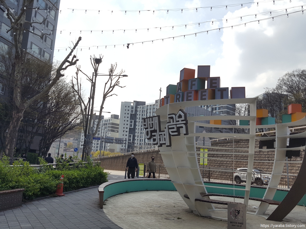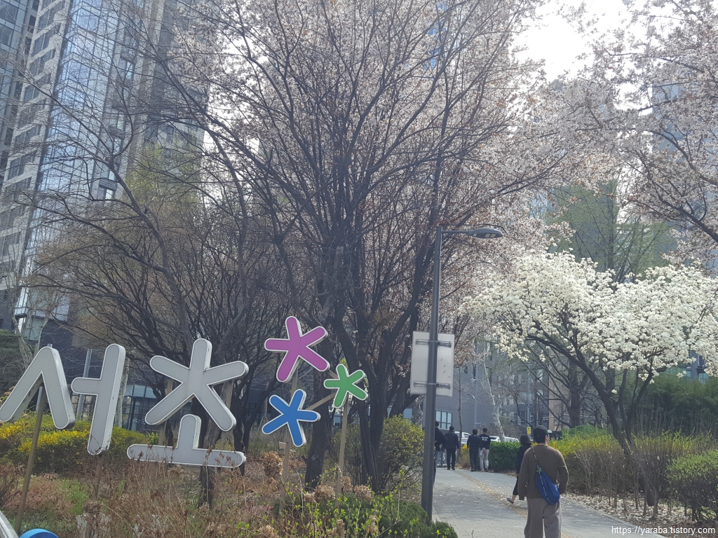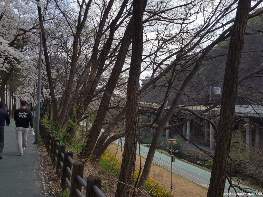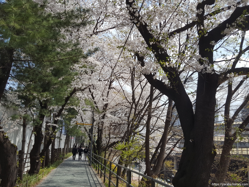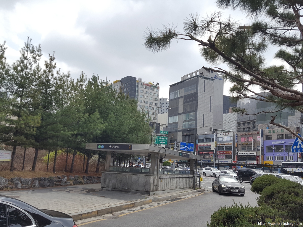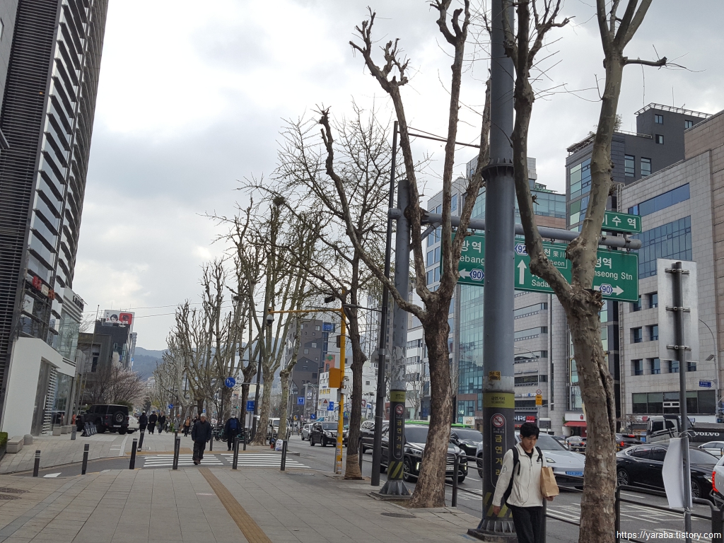 바람에 나부끼는 벚꽃 잎을 맞으며 방배 복개 도로를 걷다 보면 어느덧 사당역을 넘어간다.