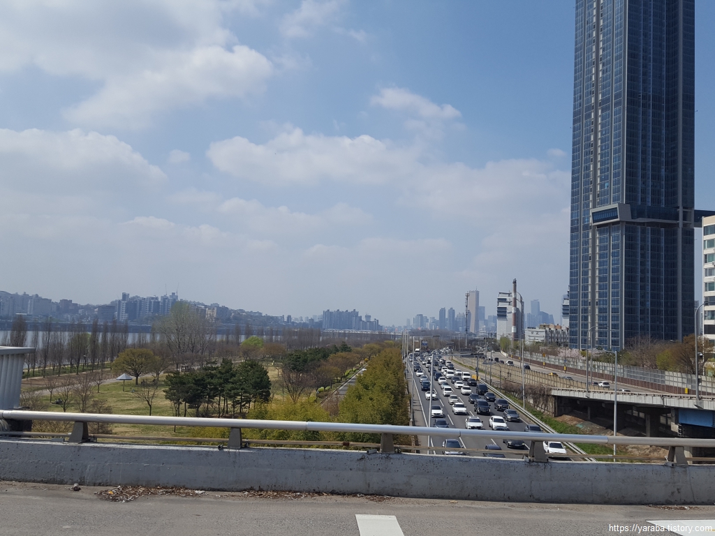넓은 둔치를 수놓고 있는 녹음과 함께 수많은 자동차들이 달리고 있는 강변북로의 정체 모습을 보니 지금 우리가 서울에 있다는 것이 실감이 난다. 서울에서 살던 시절 강변북로와 강남의 올림픽대로 정체는 늘 머리를 아프게 했다. 다시 생각만 해도 머리가 지끈거린다.