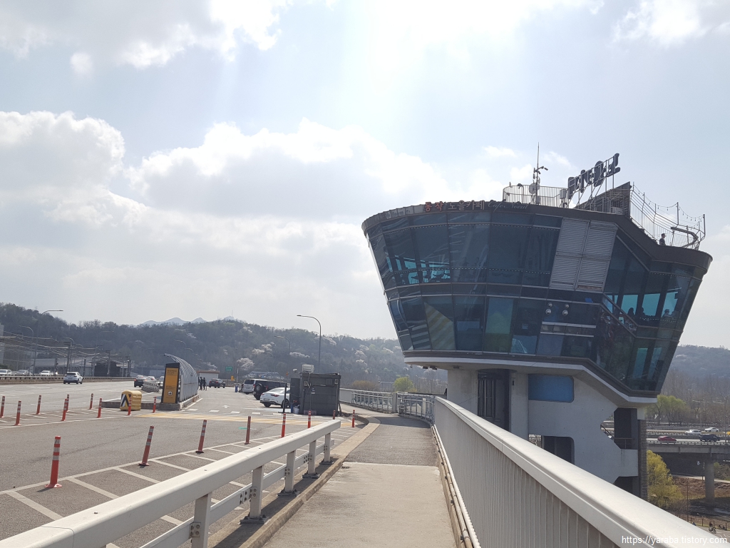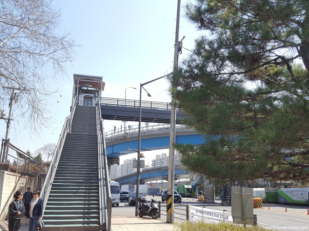 길은 용산 가족 공원 육교를 통해서 서빙고로 도로를 넘어간다. 육교 위에 올라서니 봄기운이 완연한 용산 가족 공원이 시야에 들어온다.