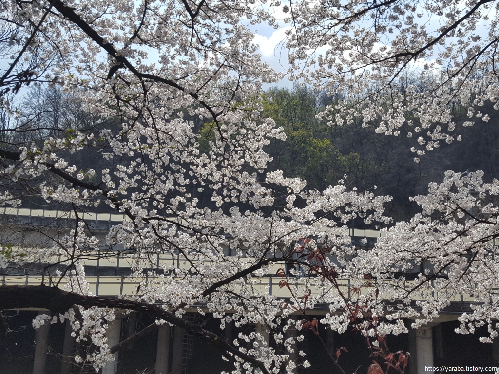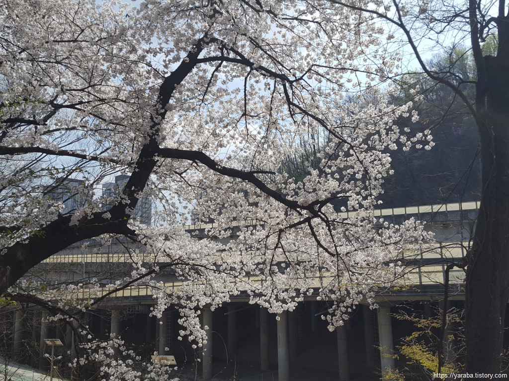 동작역에서 이수교차로로 이어지는 길은 벚꽃 천지였다. 오후의 햇살을 받아서 하얀 벚꽃이 더욱 화려하다.